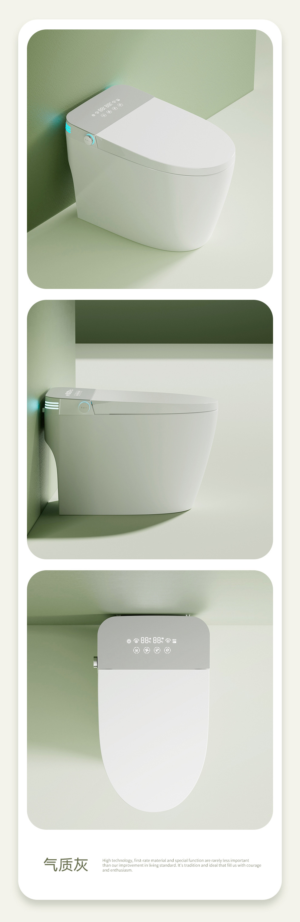 Smart toilet with ceramic sink tank, automatic toilet, remote control, splash-proof flushing